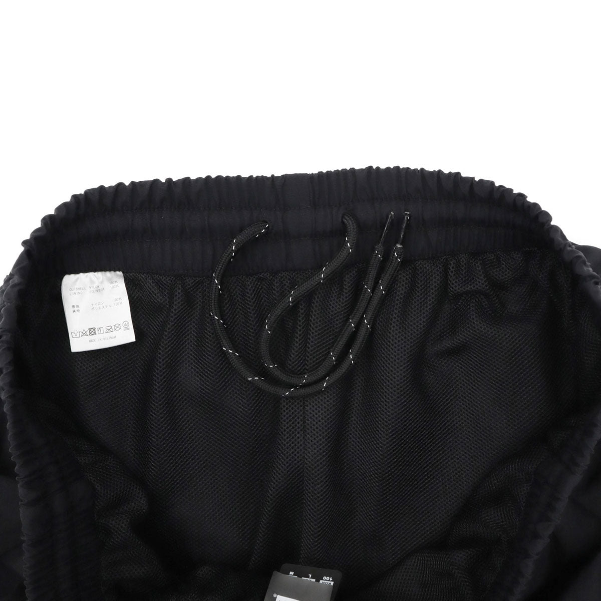 ウエスト・裾ゴム仕様のトラックパンツ。メッシュ裏地付き。両サイドと右後ろにポケットを配備。右後ろのポケットはジップ付き。